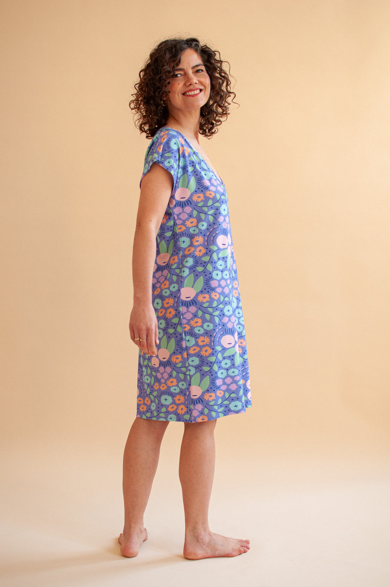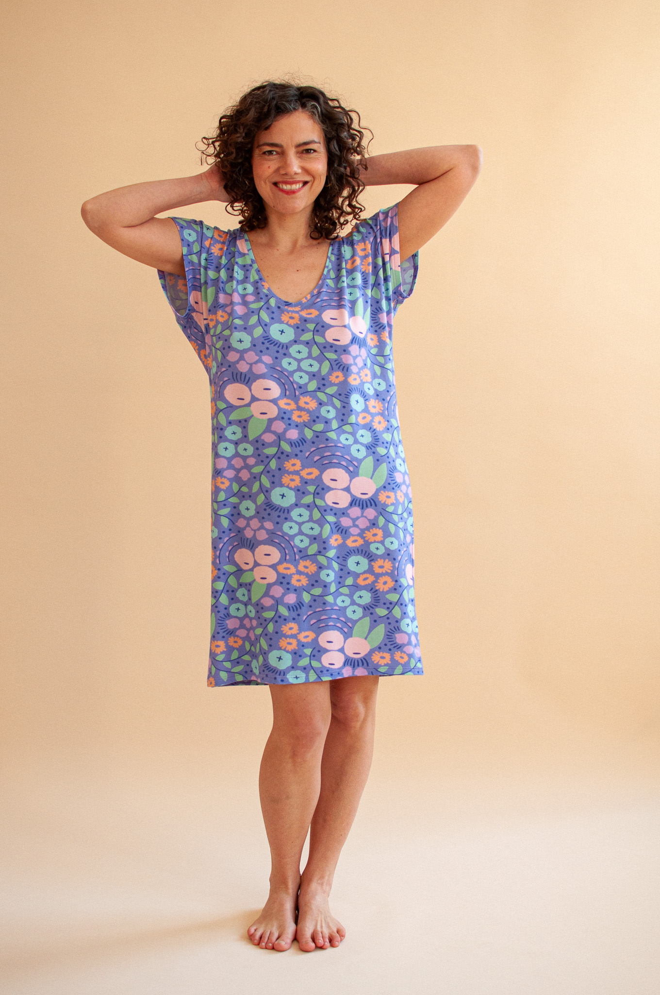 Lily ma swobodny krój i krótkie rękawki typu "motylek", dzięki czemu wygląda jak lekka, letnia sukienka. To idealny wybór, by spędzić w niej leniwy poranek na tarasie lub cieszyć się spokojnym wieczorem w domowym zaciszu.
