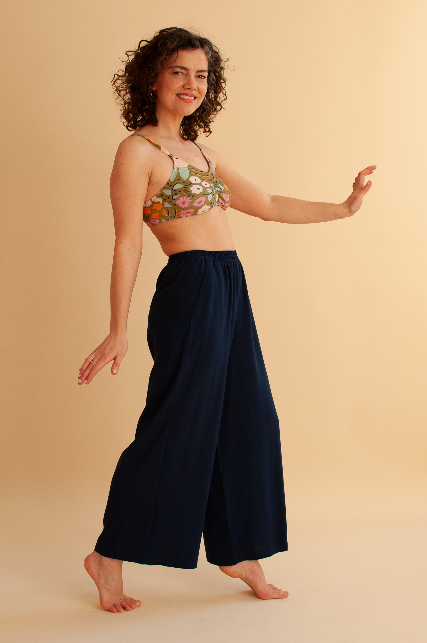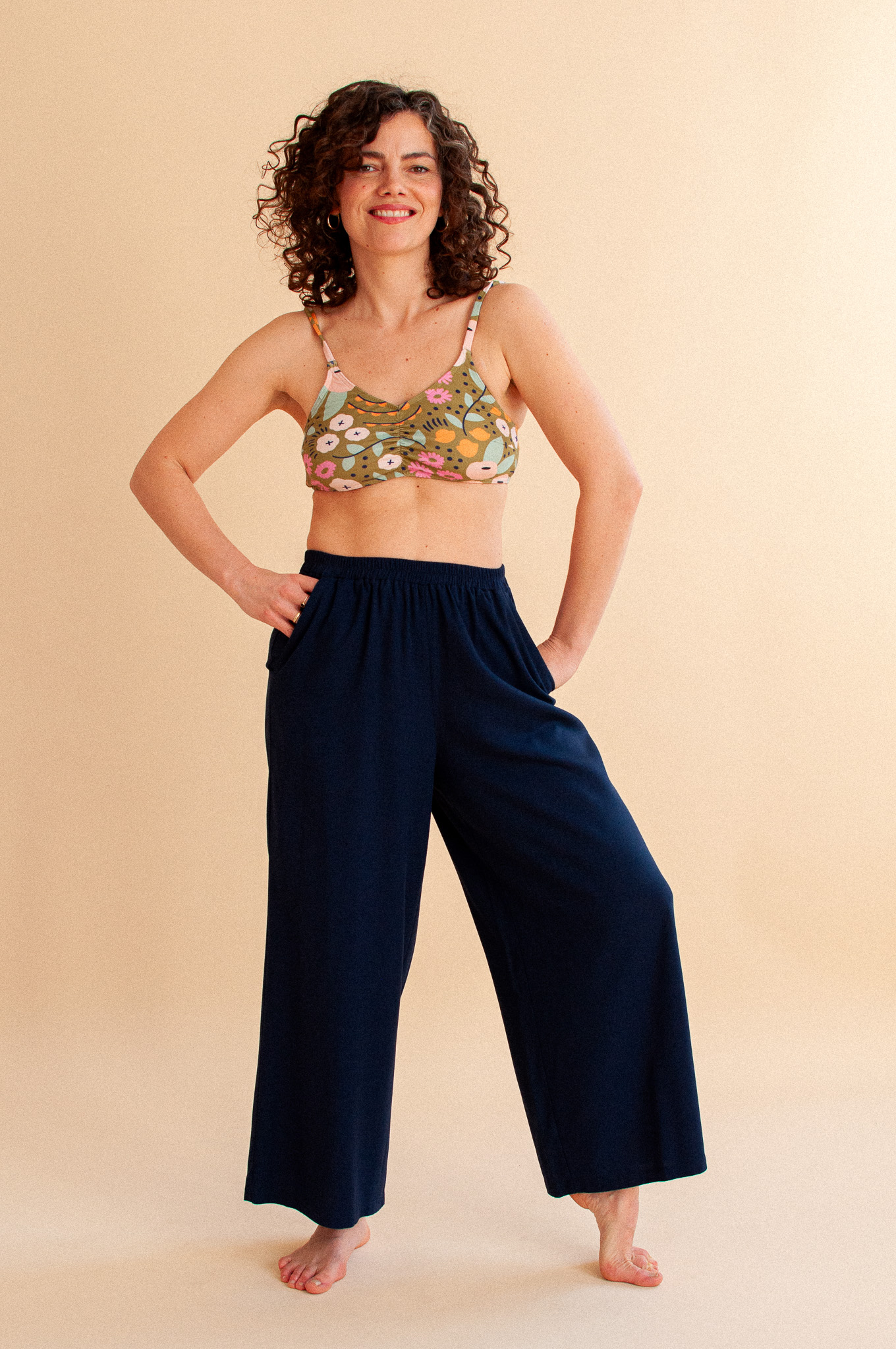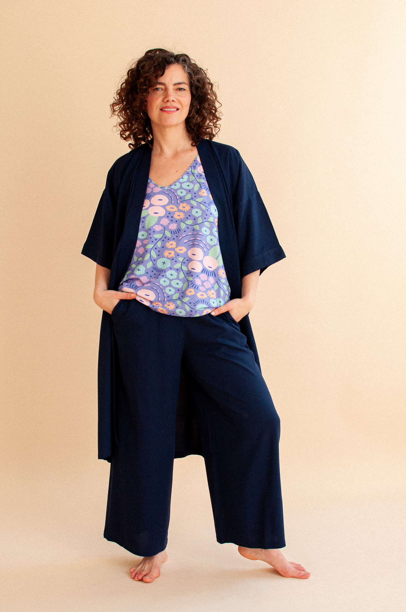 Spodnie Aster Navy Blue to fundament Twojego nowego, ulubionego zestawu. Połącz je z naszym krótkim lub długim kimonem w kolorze Navy Blue, aby stworzyć niesamowity Total Look.
