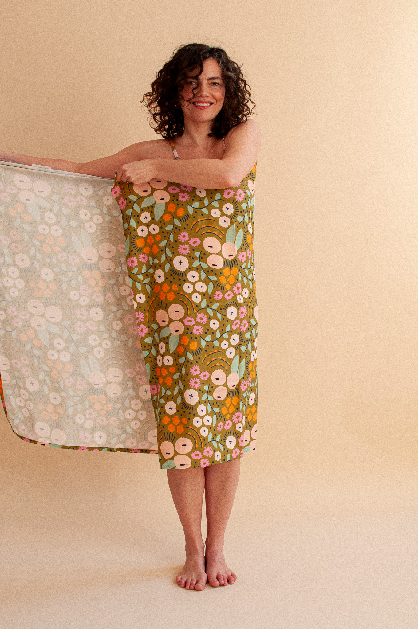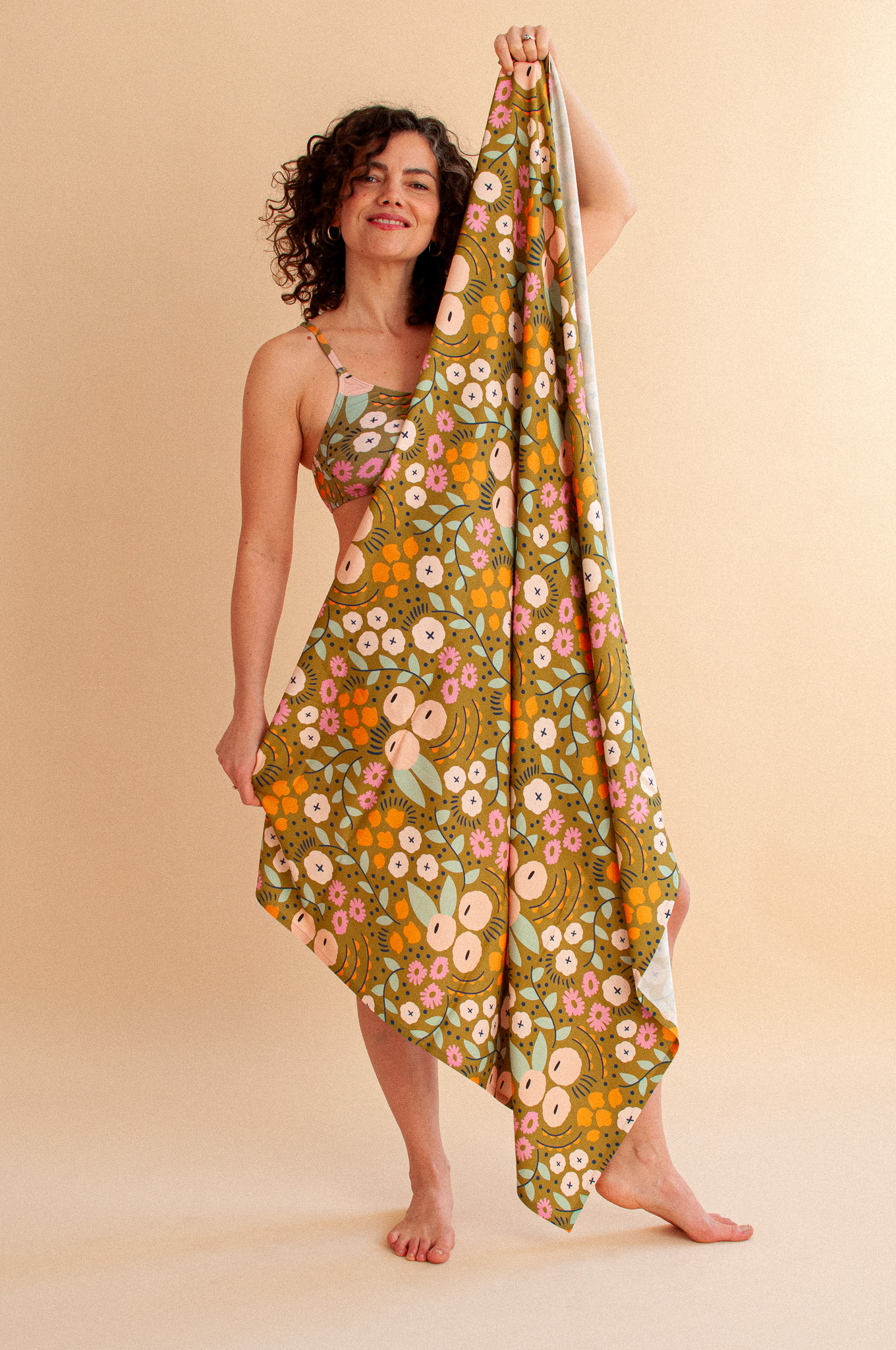 W tej kolekcji poprawiliśmy jego wymiary – teraz to 95 x 140 cm. Dlaczego to ważne? Bo te dodatkowe centymetry sprawiają, że otulacz stał się perfekcyjnym pareo, które bez trudu i z dużym zapasem zawiążesz wokół bioder, tworząc piękną, lejącą sylwetkę.