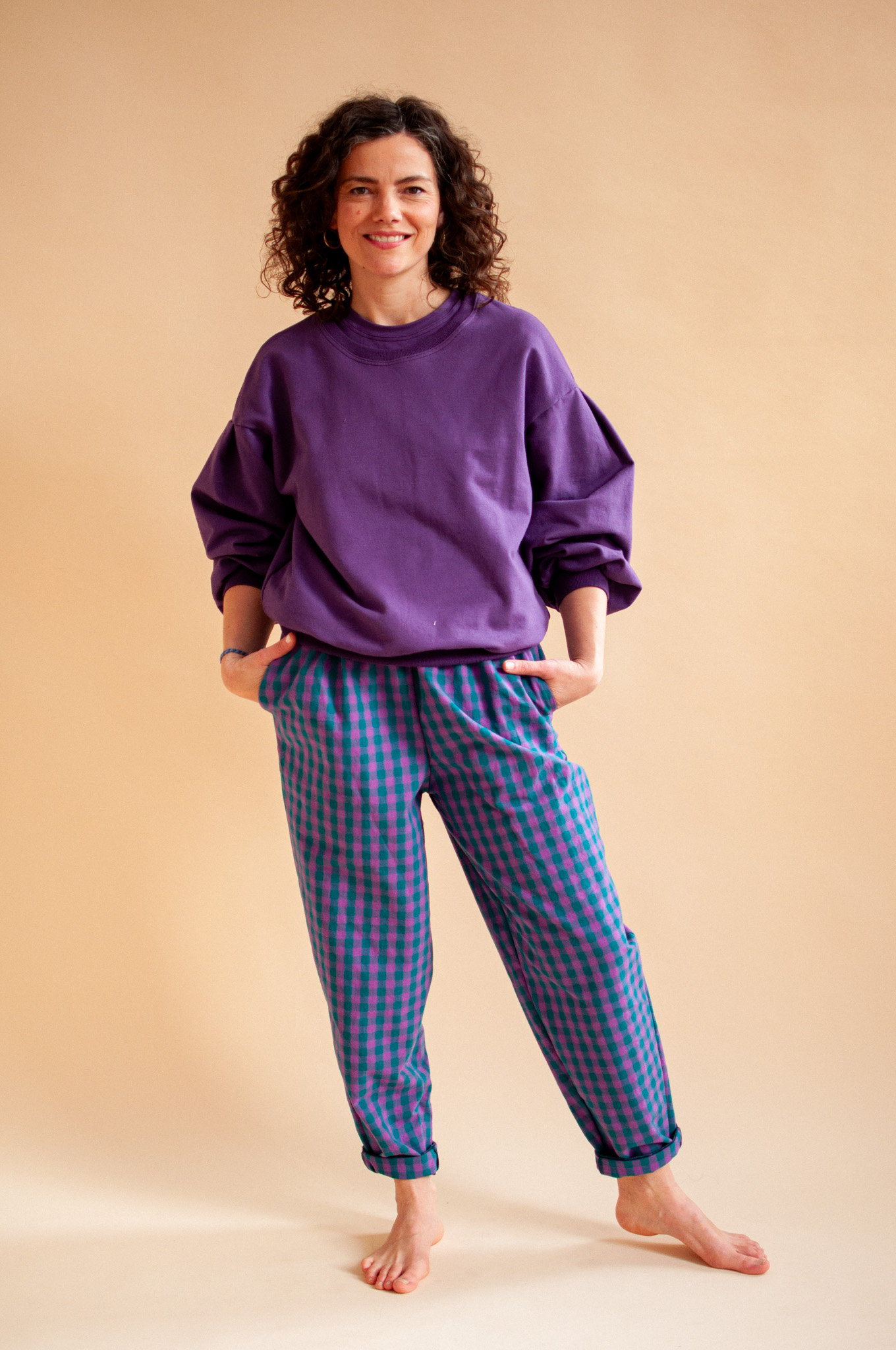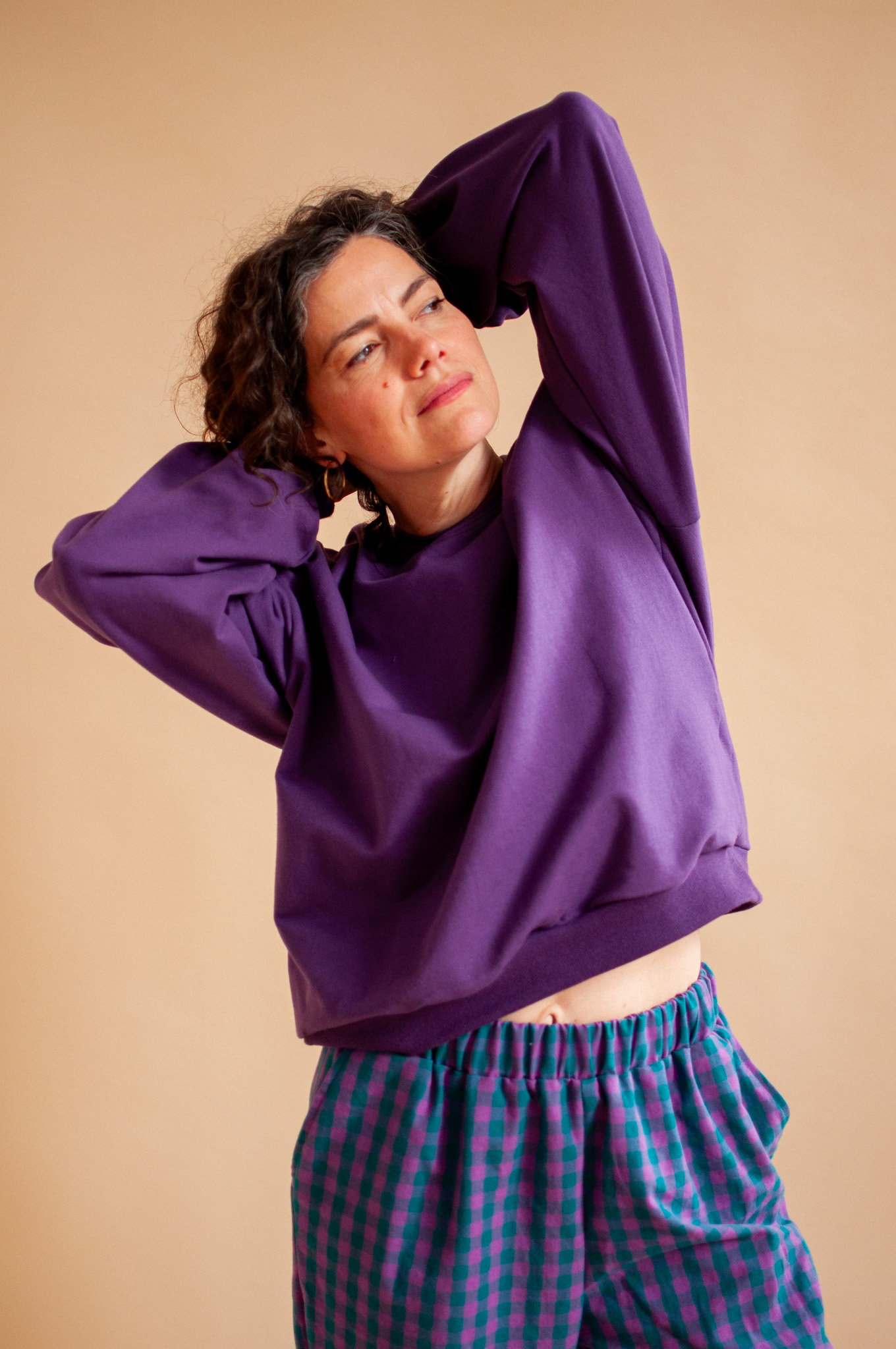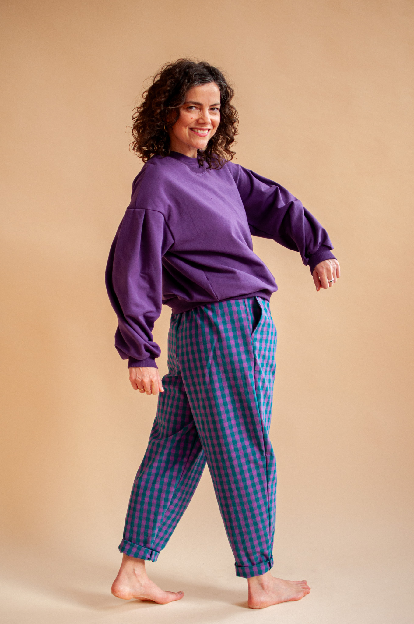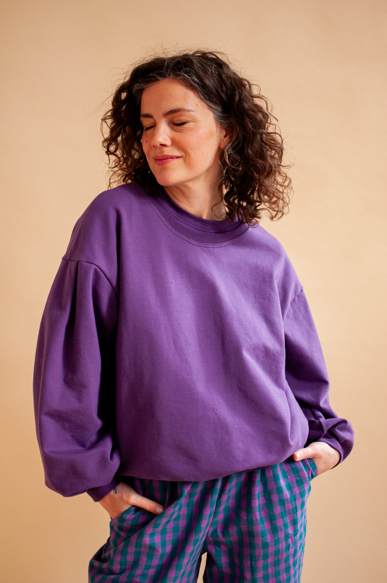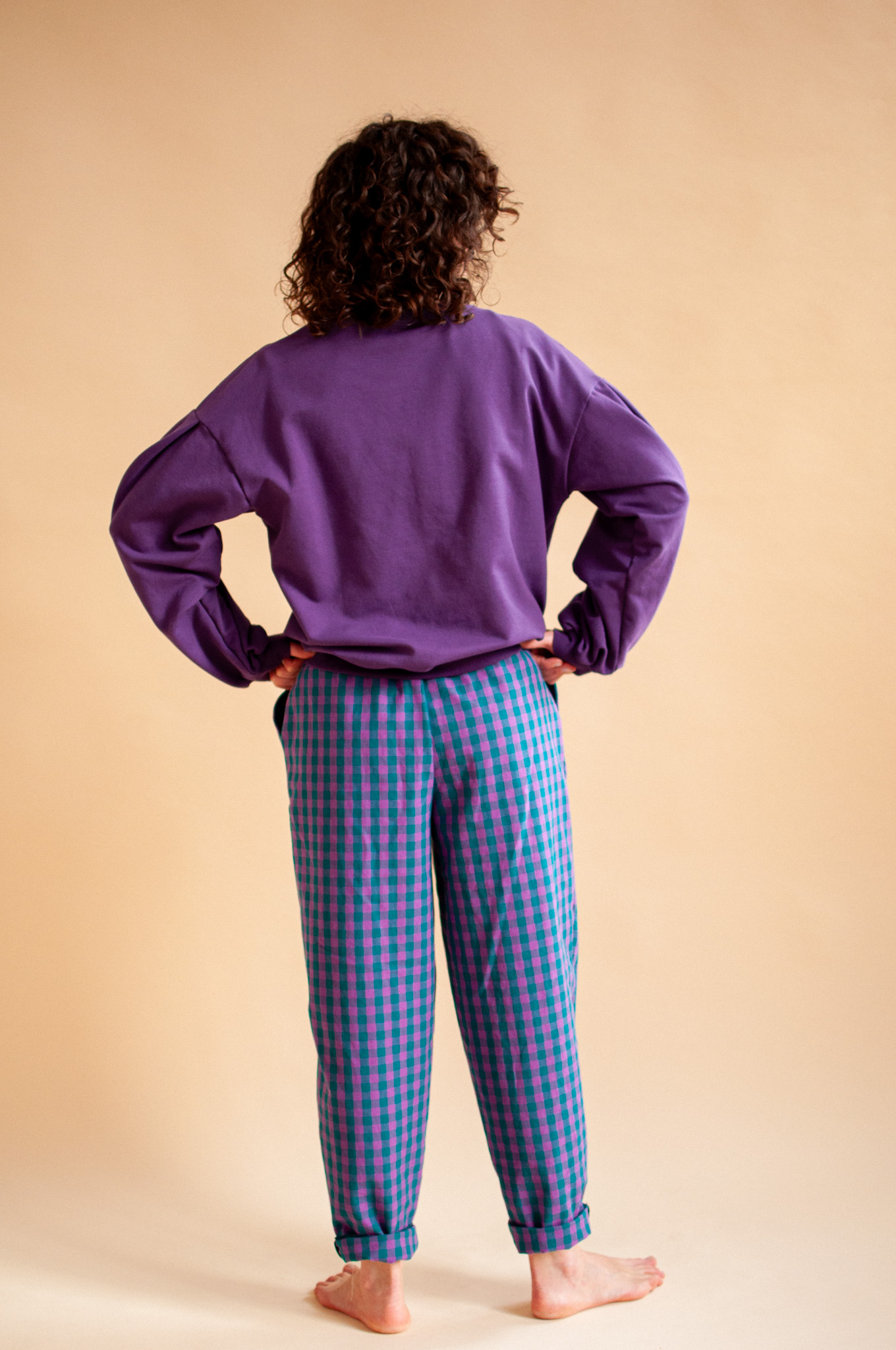 Z kolekcją kratkową: Śliwka przepięknie wyciąga głębokie tony z naszych kraciastych wzorów, tworząc look pełen klasy.