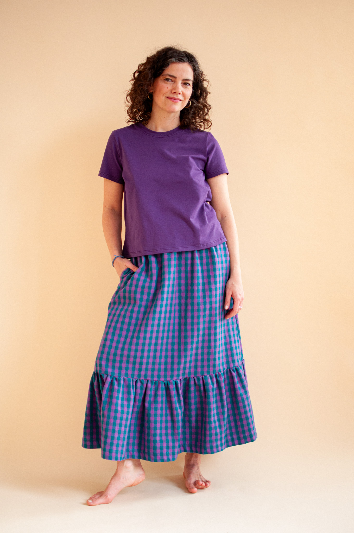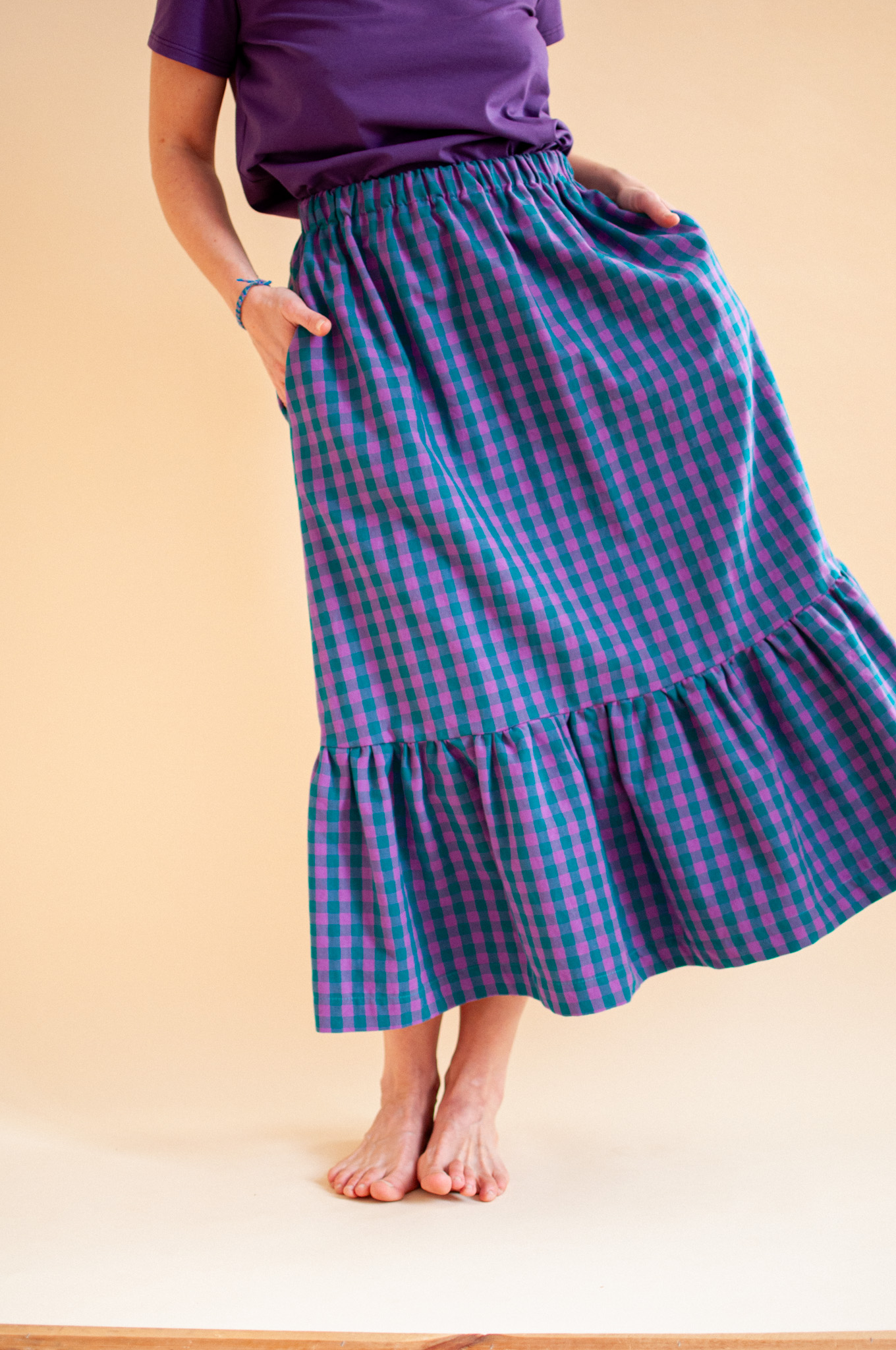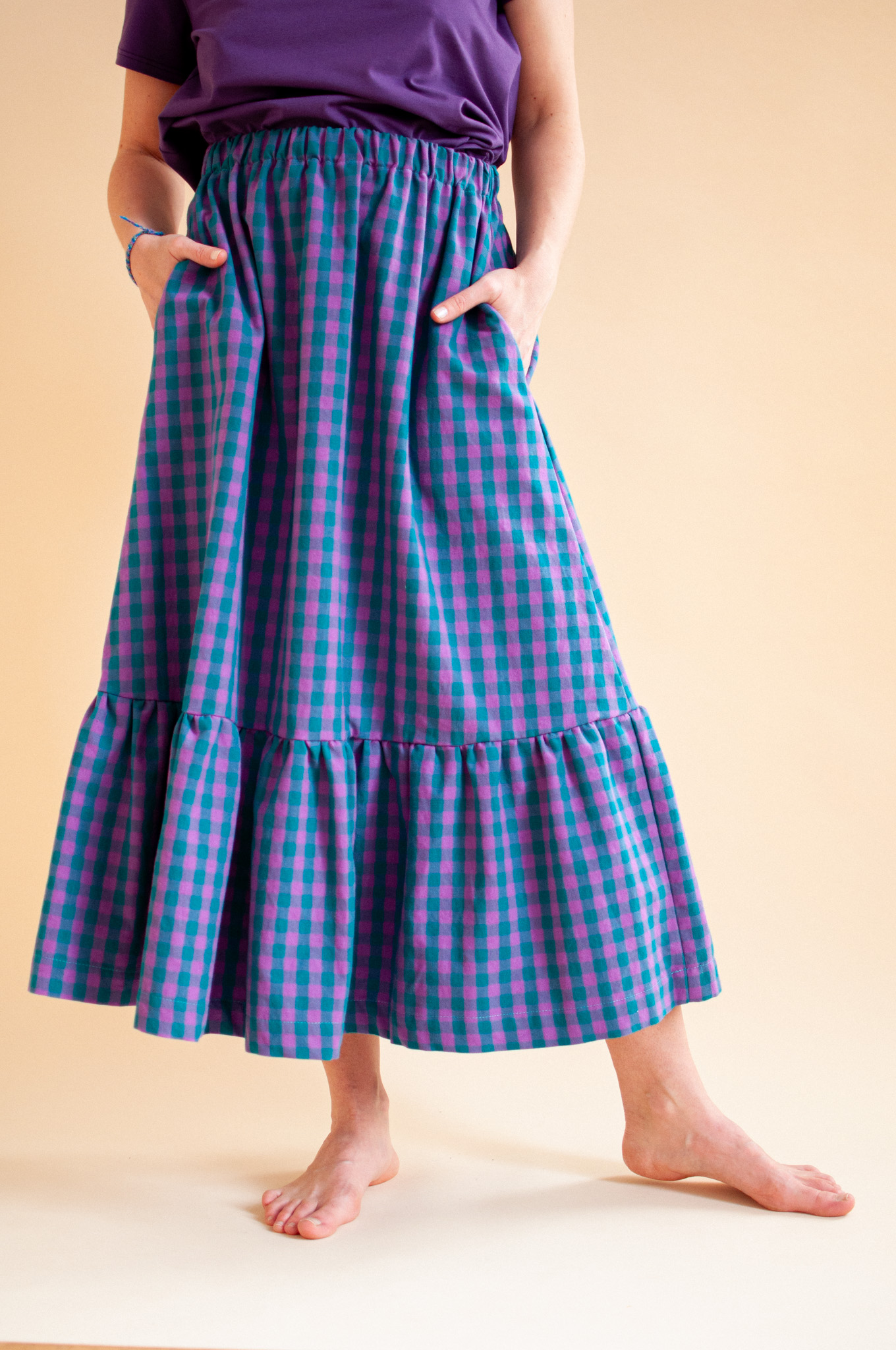 Bawełniana spódnica Pear in Violet-Malachite Check