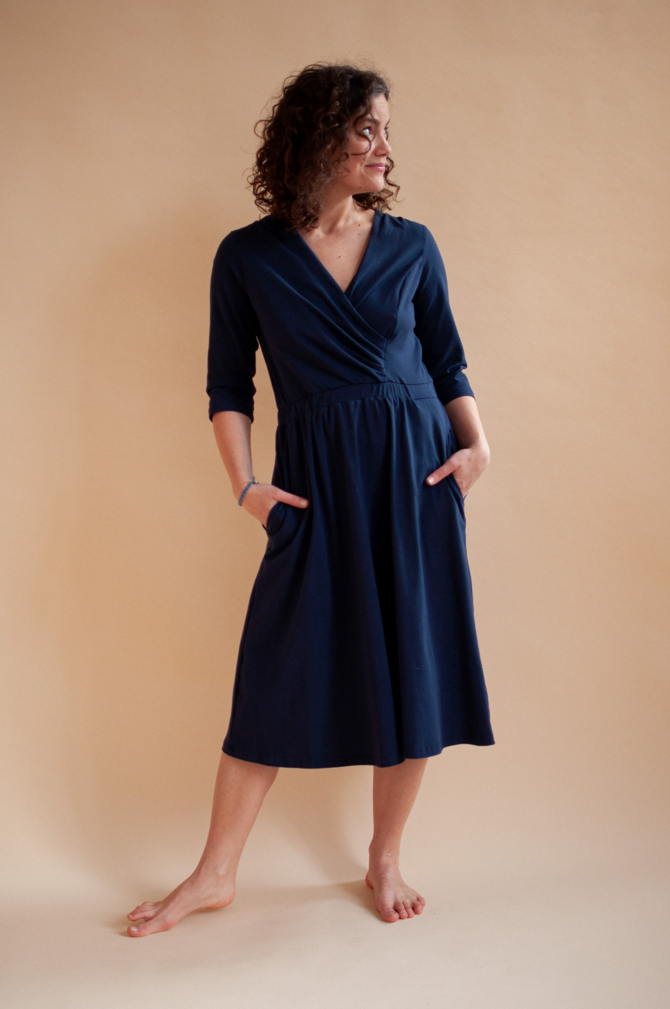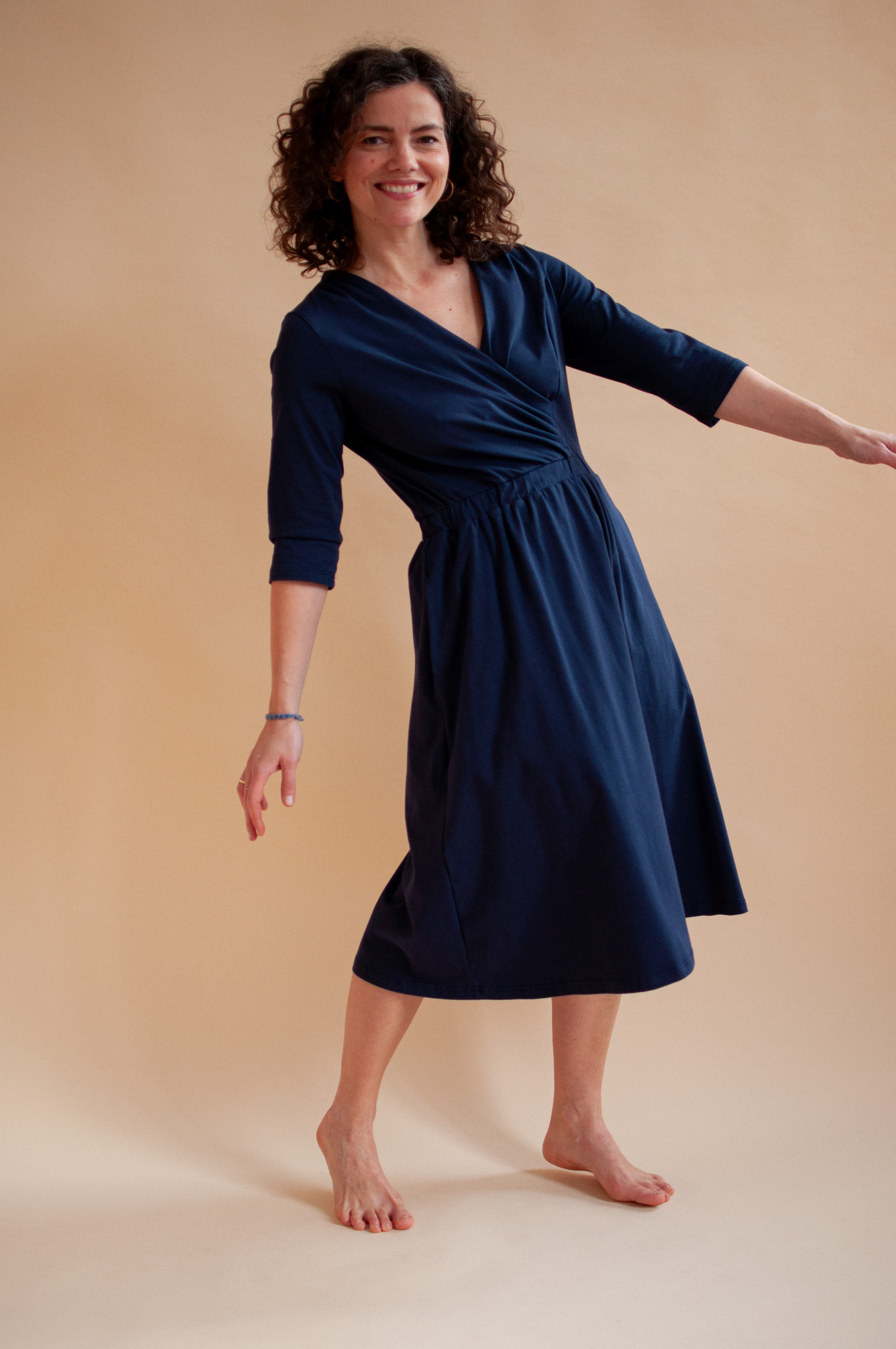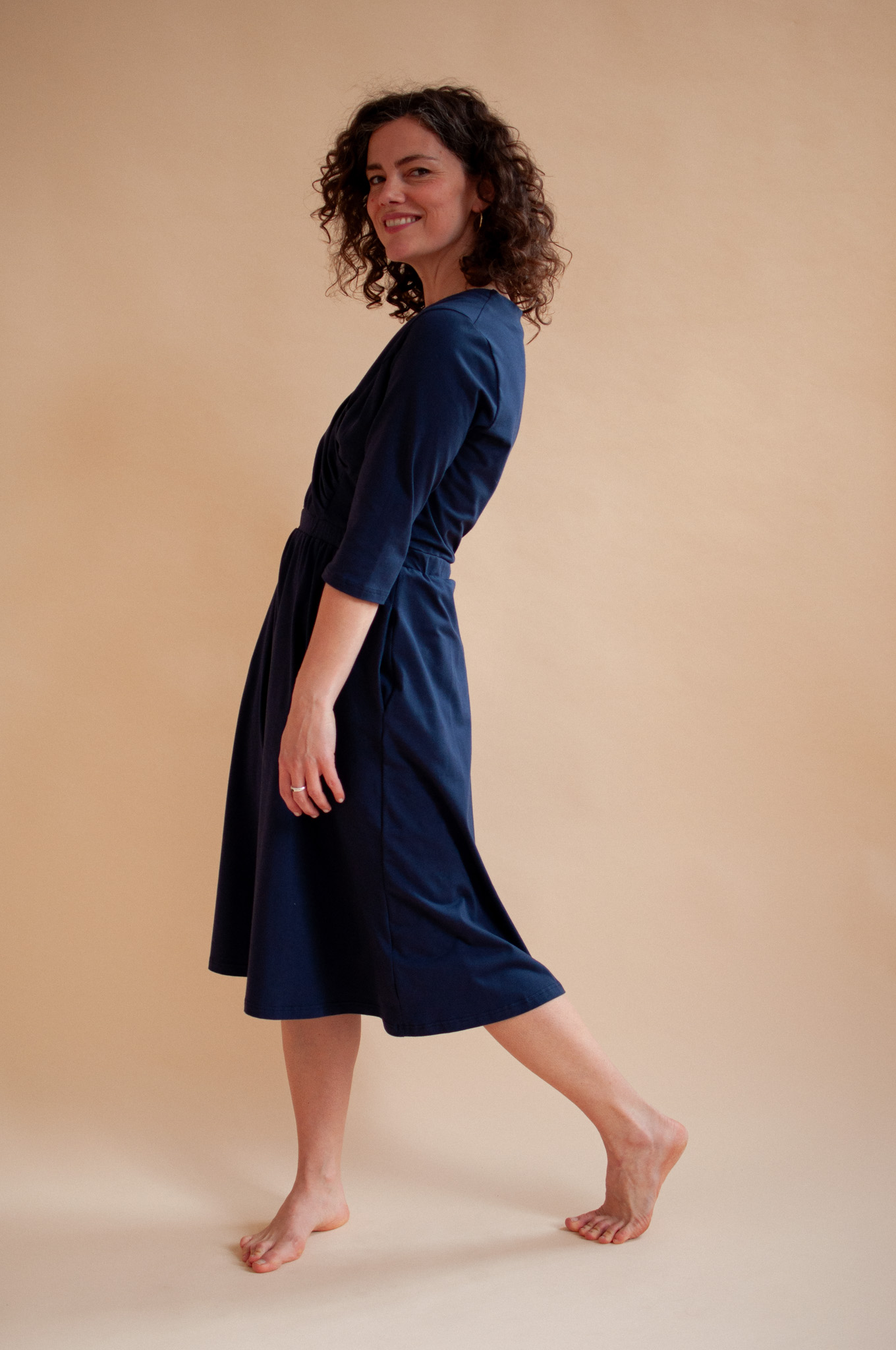 Wyobraź sobie sukienkę, która dopasowuje się do Twojego rytmu dnia, a nie odwrotnie. Sukienka Clove w kolorze głębokiego, atramentowego granatu to nasza odpowiedź na potrzebę autentyczności. Stworzyliśmy ją z myślą o kobietach, które szukają w modzie balansu między elegancją a absolutną swobodą.