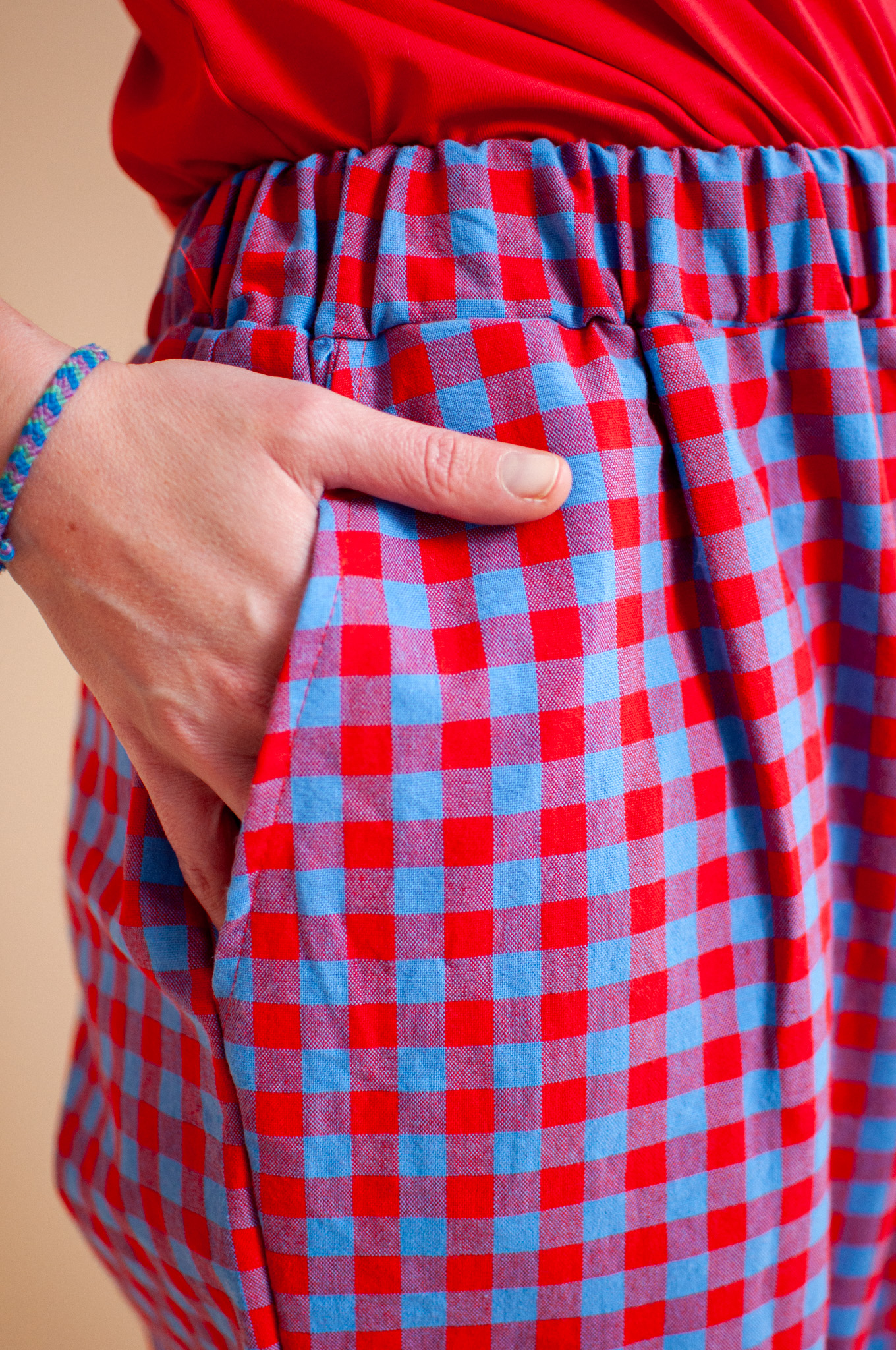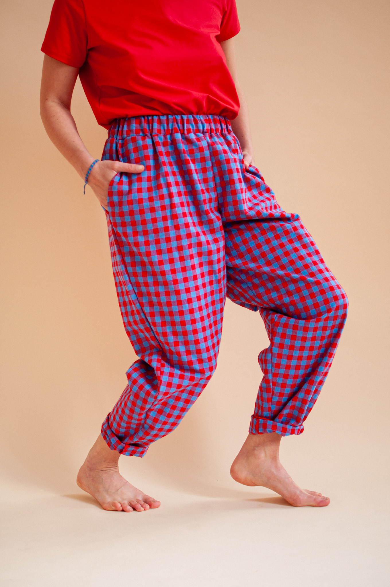 Bawełniane Spodnie Estragon in Red-Blue-Check