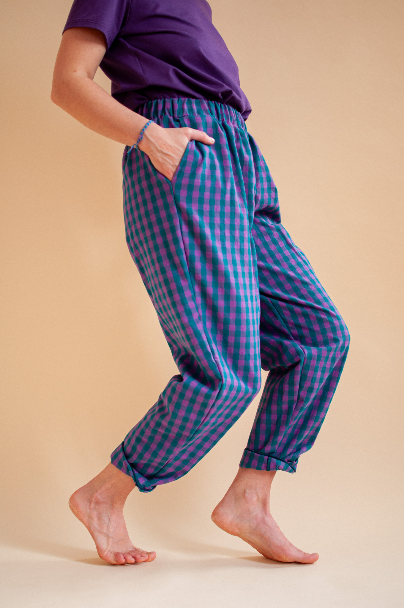 Bawełniane Spodnie Estragon in Violet-Malachite-Check