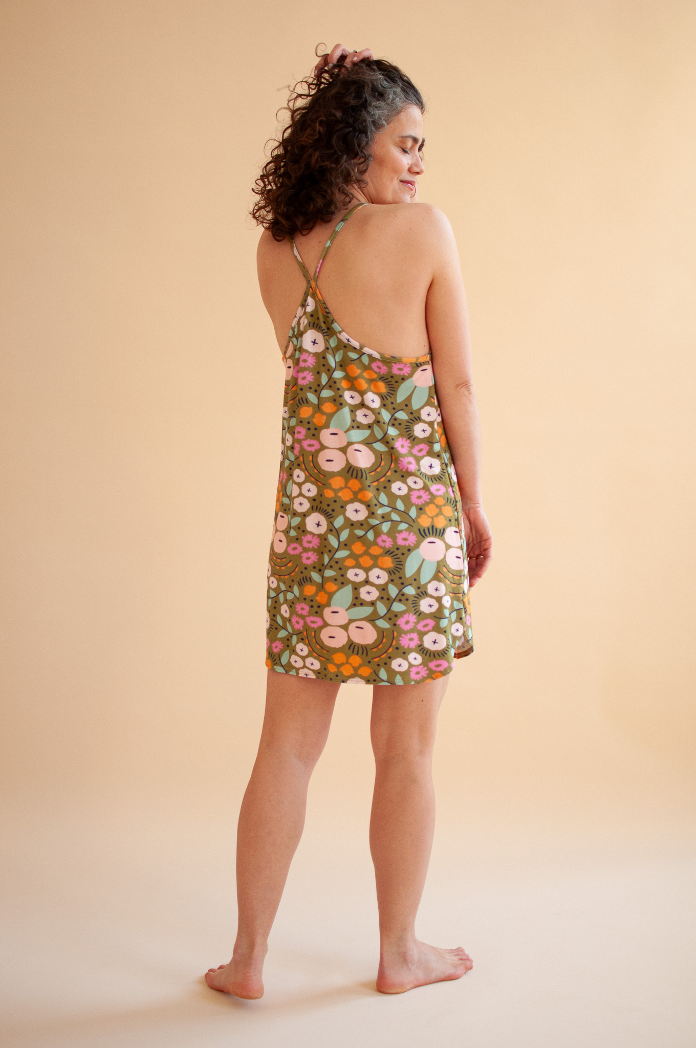 Intrygujący design: Nowy wzór Tiny Garden Green z oliwkową zielenią wnosi spokój i nastrojowy klimat do Twojej nocnej garderoby.